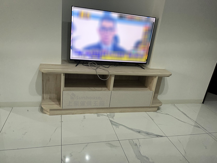 業主的客廳格局有樑柱,使用上不使,剛好在這空間塞了小電視櫃.