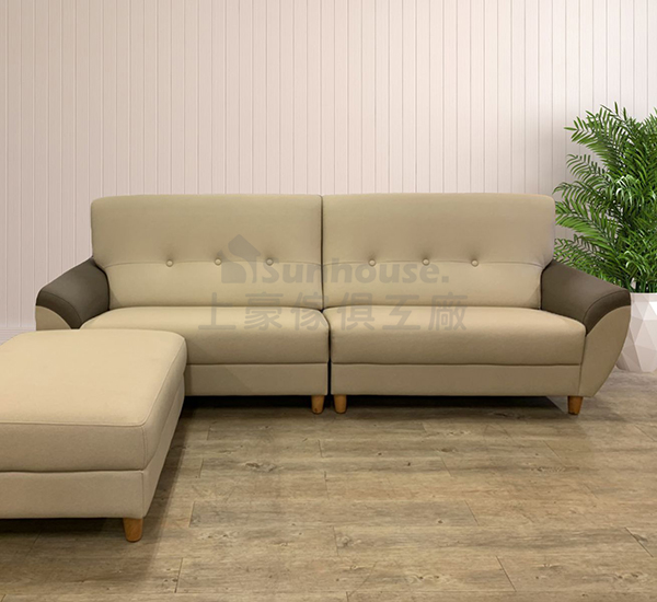 使用堅固的骨架與高密度泡棉去製作一張沙發,採用泡棉製作因為可以緩衝人與彈簧的衝力,椅腳部分採用淺色原木原腳的設計更加凸顯出北歐風的氣息。