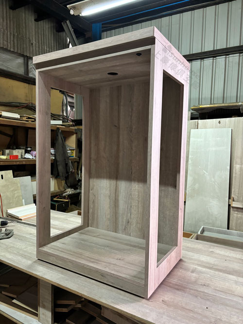 每一尊布袋戲偶,都有它獨特的身段、服飾與神韻, 為了讓它們能一一展現,展示櫃設計採用立式櫃體, 不論是霹靂武生、文士小旦,還是傳統戲偶, 都能擁有屬於自己的舞台,層次分明、井然有序。 櫃體材質選用高級防潮木心板,紋理自然、色調溫潤, 與戲偶本身的傳統質感相呼應,讓收藏空間更具文化氛圍。