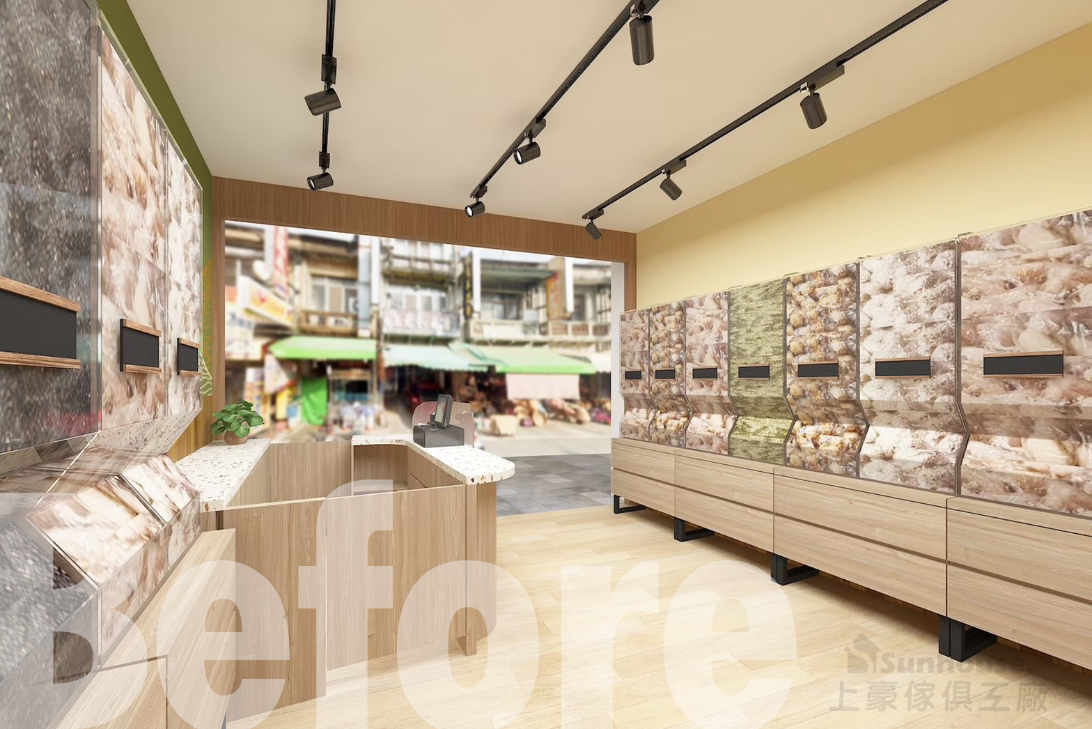 無論是系統展示櫃的透明燈光搭配,或是專為麻粩點心設計的漏斗式商品櫃體,都證明了設計團隊在3D建模與實體呈現的高度契合,完美實現空間美感與商業需求兼顧的設計理念。未來我們將持續以創意與專業,為更多品牌打造兼具實用與美感的空間規劃。